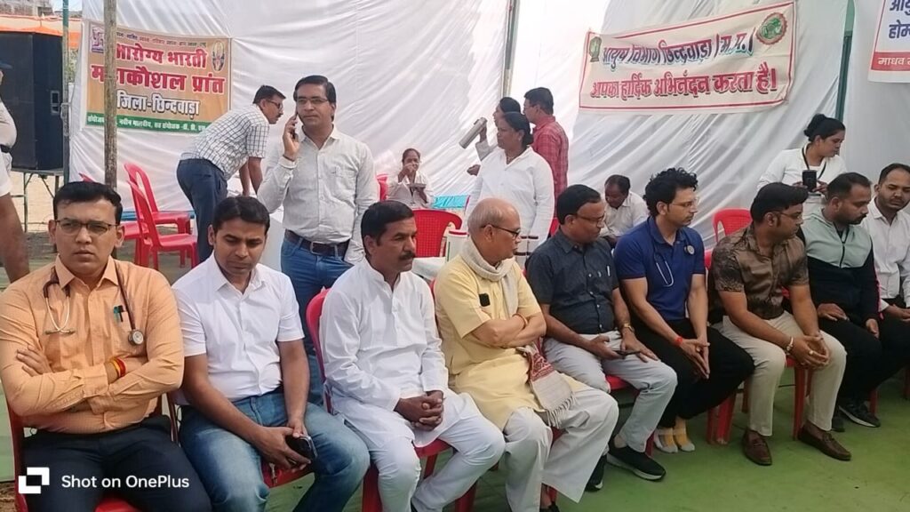 छिंदवाड़ा – माधव स्मृति न्यास छिंदवाड़ा द्वारा लोगों को स्वास्थ्य लाभ पहुंचाने के लिए निशुल्क स्वास्थ्य शिविर का आयोजन स्थानीय वार्ड क्रमांक 10 ख़ापाभाट के शासकीय माध्यमिक शाला परिसर में संपन्न हुआ । शिविर का प्रारंभ भारत माता के पूजन से प्रारंभ हुआ इसके बाद, शहीद भगत सिंह के बलिदान दिवस पर उन्हें याद कर पुष्प अर्पित किए गए , साथ ही माधव राव सदाशिव राव गोलवलकर श्री गुरु जी के छायाचित्र पर पुष्प अर्पित किए गए । सिविल का उद्घाटन छिंदवाड़ा इंस्टीट्यूट आफ मेडिकल साइंस के डीन श्री अभय कुमार सिन्हा एवं छिंदवाड़ा एसडीम सुधीर जैन द्वारा किया गया