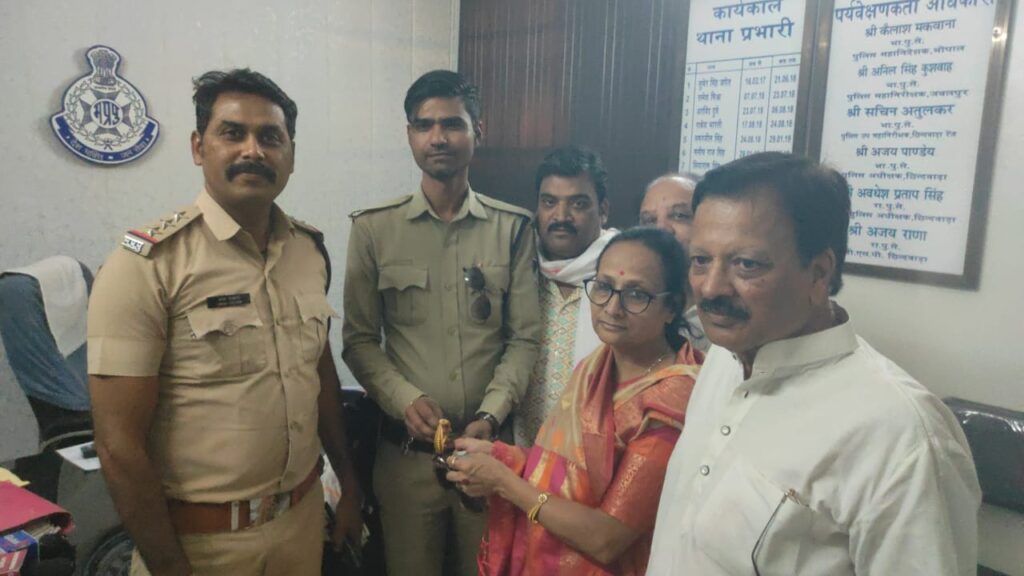 छिन्दवाड़ा - आज जैन समाज की महावीर जयंती की शोभायात्रा मे दोपहर के समय शामिल हुई महिला (पीडिता) कल्पना पाटोदी पति प्रदीप पाटोदी उम्र 60 साल निवासी गोलगंज का हाथ मे पहेना हुआ लगभग 3.5 तोला वजनी सोने का कंगन शोभायात्रा मे पैदल चलते हुए छोटी बाजार रोड मे कही गिर गया था जिसकी किमत लगभग 300000 लाख रूपये थी महिला के द्वारा थाना मे सूचना देने पर थाना प्रभारी कोतवाली उमेश गोल्हानी के द्वारा बीट मे चिता मे लगे आरक्षक 645 रामकुमार जाटव को तत्काल कंगन की तलाश पतासाजी हेतू सी सी टी वी फुटेज देखने को बताया गया जो आरक्षक रामकुमार के द्वारा त्वरीत कार्यवाही कर कंगन घुमने के स्थान के आस पास लगे सी सी टी कैमरे की फुटेज देखी गई जो सोने का कंगन एक चलित बलुन की दुकान लगाने वाले को मिला था जो आरक्षक के उक्त व्यक्ति की पहेचान कर उसके घर कुम्हारी मोहल्ला मे जाकर उस व्यक्ति से पूछताछ करने पर सोने का कंगन मिलना स्वीकार किया जिससे सोने का कंगन प्राप्त कर पीडित को सोने का कंगन किमती 3 लाख रूपये का सुपुर्द किया गया । कंगन मिलने पर पीडित महिला के चेहरे की खुशी वापस लौट आई और पुलिस का आभार व्यक्त किया ।