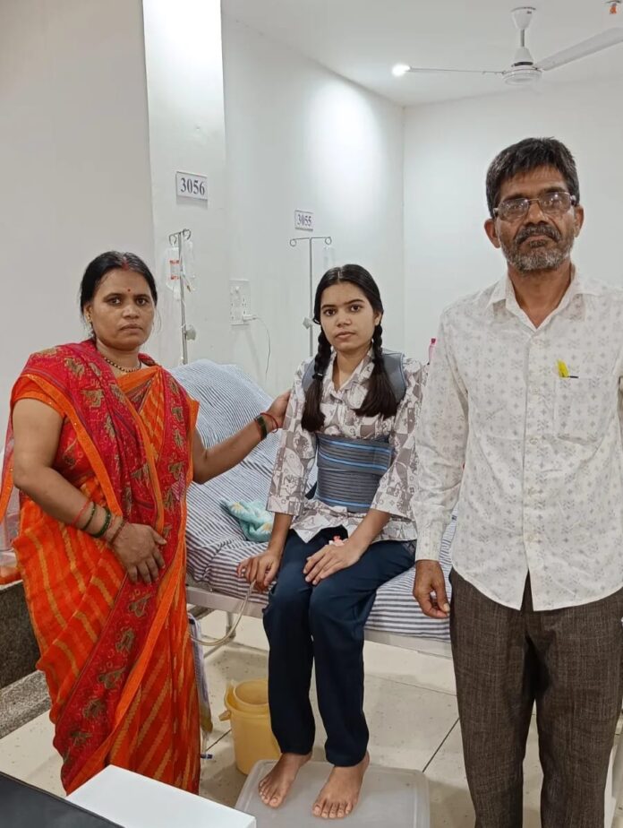 अमरवाड़ा निवासी भूमिका डेहरिया पिछले एक साल से रीढ़ की विकृति काइफोस्कोलियोसिस से पीड़ित थीं। इस स्थिति में रीढ़ की हड्डी पीछे और साइड की ओर मुड़ जाती है, जिससे चलने, सांस लेने, शरीर का संतुलन और सामान्य जीवन अत्यधिक प्रभावित होता है।भूमिका को लगातार पीठ दर्द, थकावट, सांस लेने में तकलीफ और झुकाव जैसी समस्याओं का सामना करना पड़ रहा था।