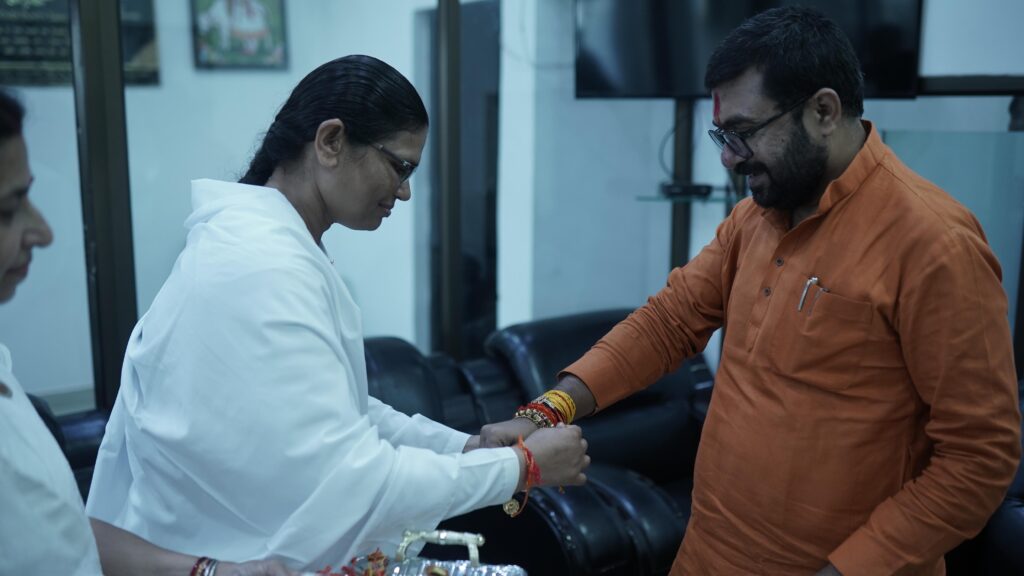 सांसद ने ब्रह्मकुमारी बहनों से रक्षा सूत्र बंधवाकर लिया उनका आशीर्वाद
