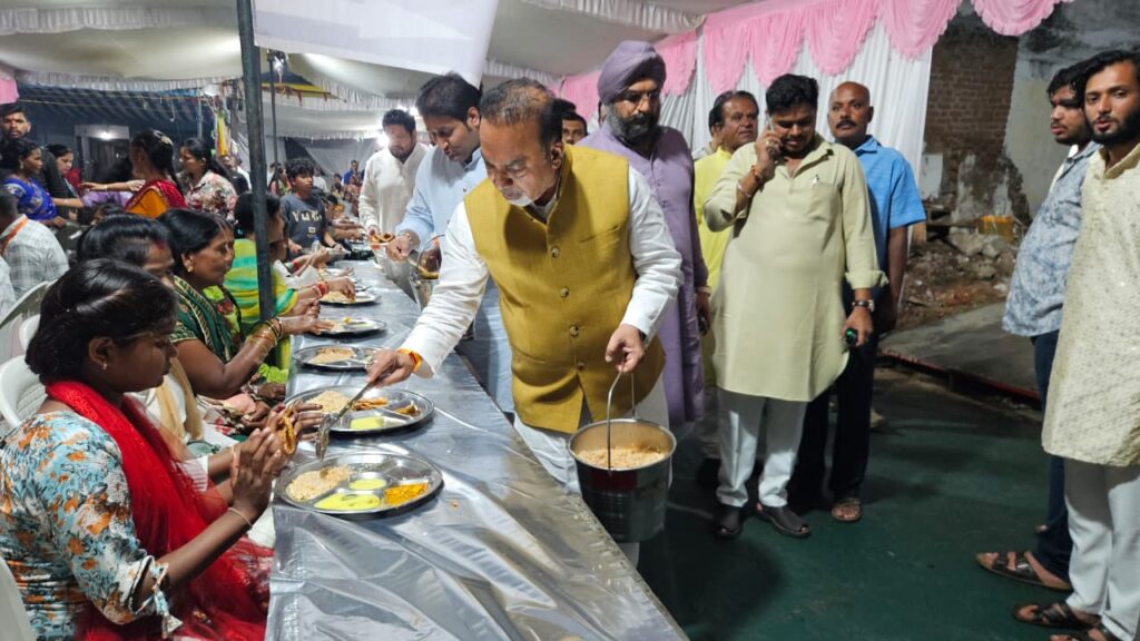 संस्था सेवा संस्कार समिति के तत्वाधान मे रॉयल क्लब द्वारा आयोजित इस 10 दिवसीय भण्डारे के बारे मे जानकारी देते हुये क्लब के अध्यक्ष गुरजीत सिंह शंटी बेदी ने बताया कि संस्था द्वारा इस विशाल भण्डारा के आयोजन के तीसरे वर्ष मे भक्तों का उम्मीद से अधिक प्रतिसाद मिला है तीसरे वर्ष की तुलना मे इस साल जनमानस को कार्यक्रम की जानकारी पहले से ही होने से बड़ी संख्या मे भक्तों ने उपस्थित होकर माता रानी के भण्डारे का प्रसाद ग्रहण किया है। शंटी बेदी ने कहा कि भण्डारे के 10 दिनों मे लगभग 5 लाख श्रद्धालुओं ने फलाहरी प्रसादी एवं भोजन ग्रहण किया है। दस दिवसीय इस कार्यक्रम मे समाज के विभिन्न वर्गों एवं सामाजिक संस्थाओं के प्रमुखों सहित प्रमुख समिति सदस्यों का साधुवाद करते हुए शंटी बेदी ने कहा कि सेवा संस्कार समिति रॉयल क्लब इस पुनीत कार्यक्रम मे प्रत्यक्ष एवं अप्रत्यक्ष रूप सहयोगी सभी महानुभावों का हृदय के अन्तःकरण से साधुवाद देती है जिसमें भाजपा जिला अध्यक्ष शेषराव यादव ने भी भंडारे में पहुंचकर श्रद्धालुओं को प्रसाद वितरण किया उनके साथ उपाध्यक्ष अजय सक्सेना योगेंद्र राणा धर्मेंद्र मिगलानी विजय पांडे संजय पटेल भारत गई विजेंद्र चौहान माइकल पहाड़े एवं भाजपा के पदाधिकारी लोग भी भंडारे में शामिल होने पहुंचे।।साथ ही सदस्यों के साथ-साथ जो मातृशक्ति एवं बहनें भोजन प्रसादी की व्यवस्था मे सेवारत् रही हैं उनके बिना इस कार्य को सफल बनाना असंभव था उनके चरणों मे प्रणाम्। सफल कार्यक्रम के लिये संस्था सेवा संस्कार समिति रॉयल क्लब की संपूर्ण नगर मे भूरी-भूरी प्रशंसा की जा रही है एवं संस्था ऐसे ही जनकल्याण के सांस्कृतिक सामाजिक शैक्षणिक पर्यावरण एवं क्रीडा के कार्यक्रमों को संचालित करते रहे इसके लिये लगातार शुभकामनाऐं एवं बधाई प्राप्त हो रही है।