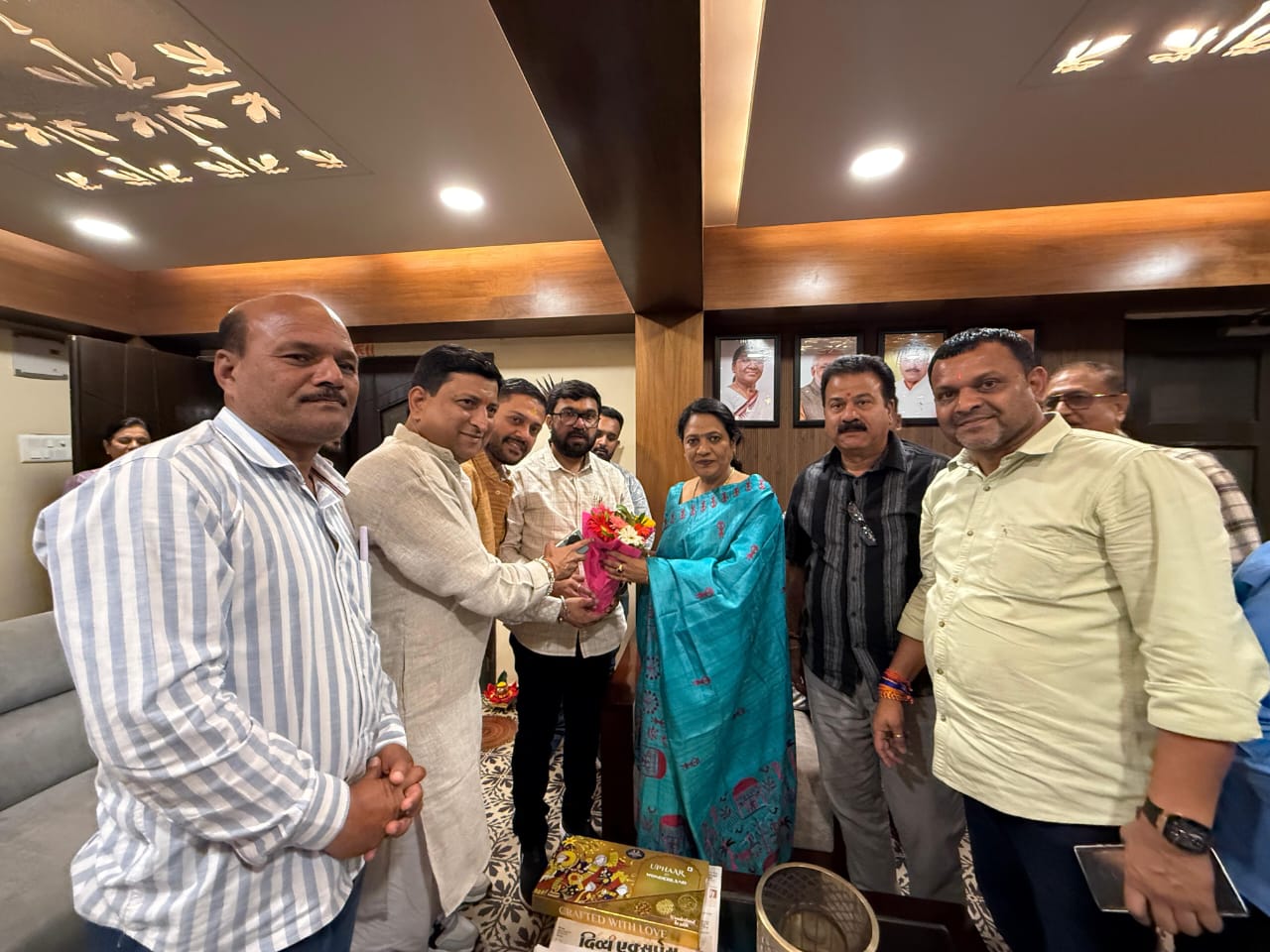 छिन्दवाड़ा। भारतीय जनता पार्टी के प्रदेश अध्यक्ष हेमंत खंडेलवाल ने गत दिनों प्रदेश कार्यकारिणी की घोषणा की थी। जिसमें सागर सांसद लता वानखेड़े को प्रदेश महामंत्री नियुक्त किया गया हैं। उनकी नियुक्ति पर हर्ष व्यक्त सांसद बंटी विवेक साहू ने शुक्रवार की शाम को उनसे मुलाकात करते हुए उन्हें भाजपा प्रदेश महामंत्री बनने और दीपावली की हार्दिक शुभकामनाएं दी है। इस दौरान सांसद साहू ने प्रदेश महामंत्री लता वानखेड़ें से छिन्दवाड़ा से सागर नई रेल लाईन के संबंध में विस्तार से चर्चा की। वहीं इस नई रेल लाईन को लेकर मिलकर प्रयास करने के संबंध में बात हुई। इस अवसर पर मंडल अध्यक्ष अंकुर शुक्ला, सौरभ ठाकुर, नवीन बारस्कर, लीला बजोलिया, रमाकांत पटेल, भाजपा जिला उपाध्यक्ष बंटी पटेल, पिछला वर्ग मोर्चा के जिलाध्यक्ष जागेन्द्र अल्डक, सहकारिता प्रकोष्ठ के जिला संयोजक संतोष पटेल, रोगी कल्याण समिति के सदस्य चंद्रकुमार चंदू जैन, वरिष्ठ भाजपा नेता अलकेश लांबा, अनिल गोयल, पप्पू ठाकुर सहित अन्य पदाधिकारी उपस्थित थे।