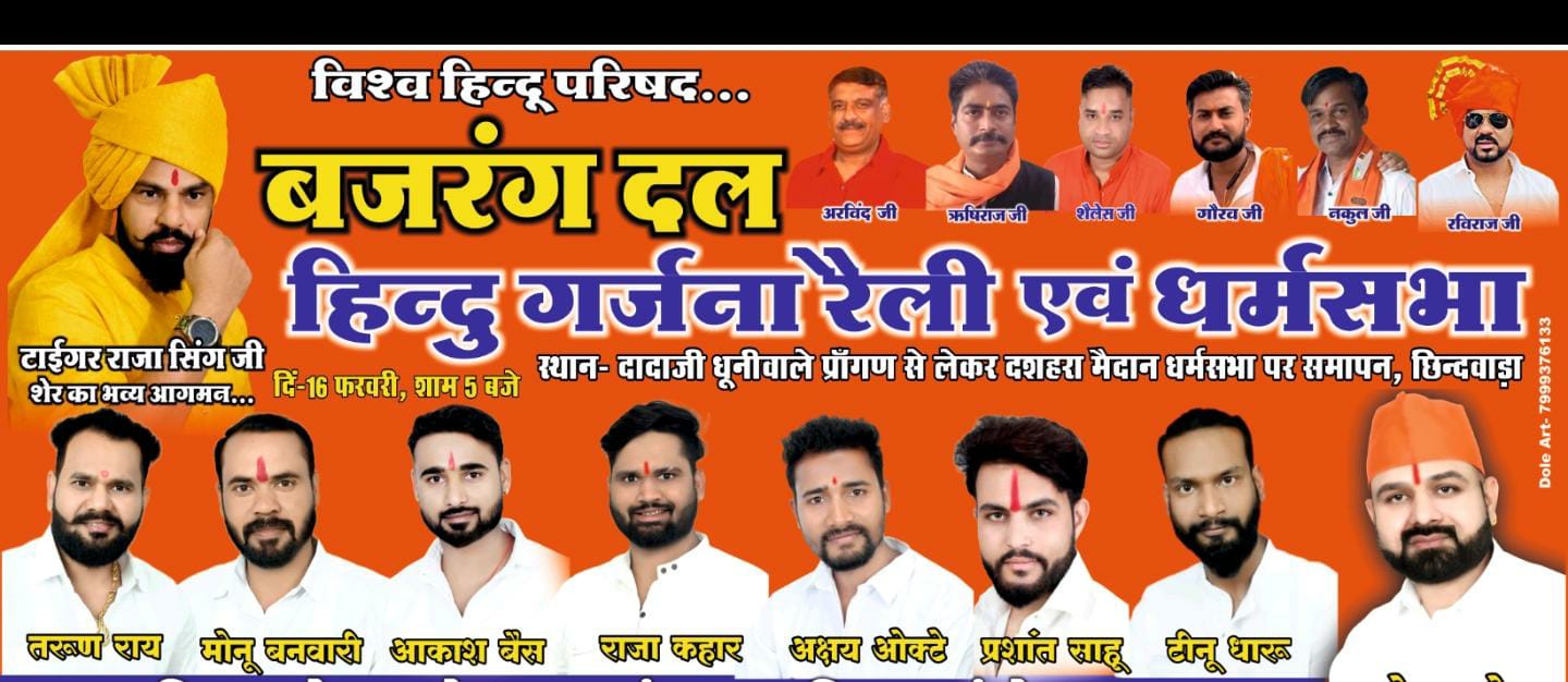 जिला बजरंग दल संयोजक नरेंद्र पटेल ने बताया कि इस वर्ष हिन्दू गर्जना रैली का आयोजन पांचवें वर्ष में प्रवेश कर रहा है। कार्यक्रम में विशेष रूप से तेलंगाना के विधायक एवं प्रखर हिंदुत्ववादी नेता टी राजा सिंह पहली बार छिंदवाड़ा पहुंचेंगे और धर्मसभा को संबोधित करेंगे।